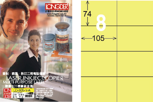 商品名稱:龍德 LD-805-Y-A A4三用電腦標籤 淺黃色 / 盒
