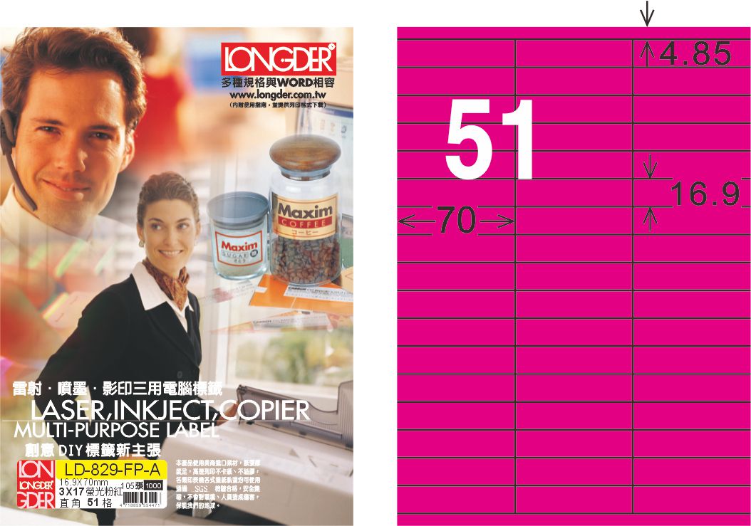 >龍德 LD-829-FP-A A4雷射影印標籤 螢光粉紅 / 盒