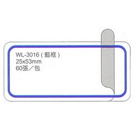 商品名稱:【華麗牌】WL-3016 藍框保護膜標籤(25x53mm) 60張/包商品單位:包商品型號:WL-3016商品特色: 白底藍框保護膜標籤 適用黏貼在紙張或塑膠表面文件檔案夾/索引/商品標示/規格/分類等各種標示黏貼之用