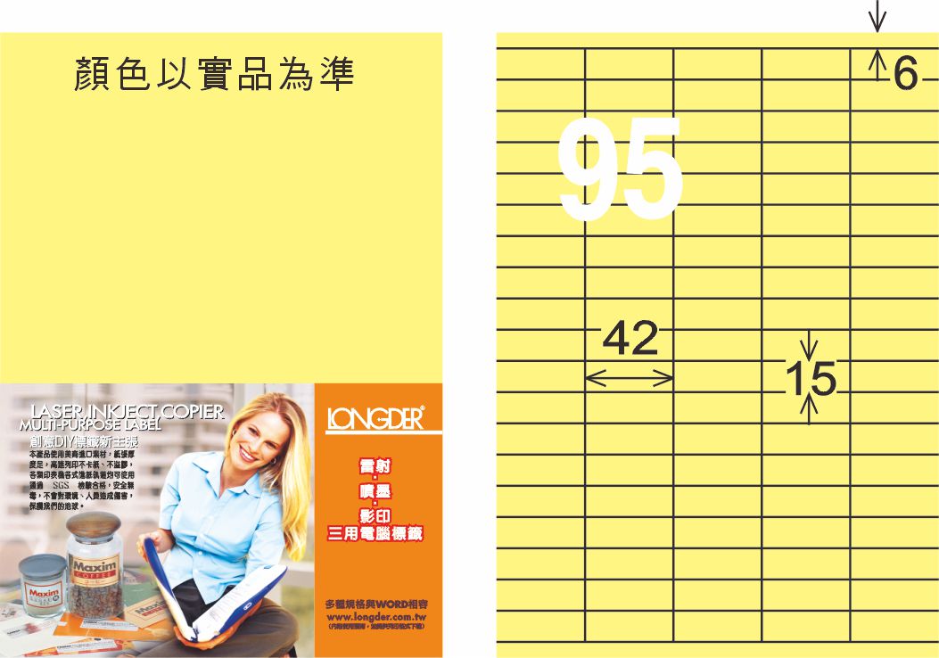 商品名稱:龍德 LD-843-Y-C A4三用電腦標籤 淺黃色 / 包