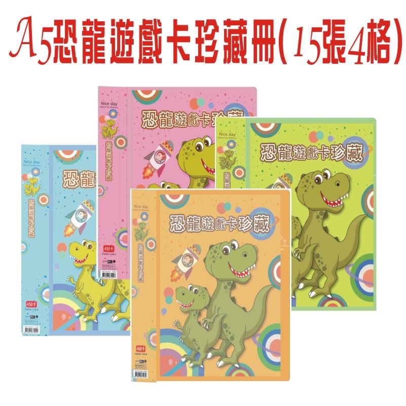 【檔案家】A5恐龍2孔4格遊戲卡冊 - (藍綠紫桔) OM-TA54D02 四格遊戲卡收集珍藏冊