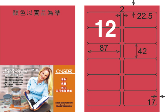 >龍德 LD-810-FR-C A4雷射影印標籤 螢光紅 / 包