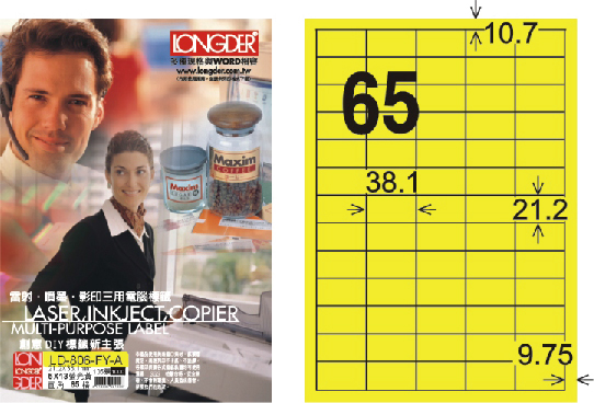 商品名稱:龍德 LD-806-FY-A A4雷射影印標籤 螢光黃 / 盒