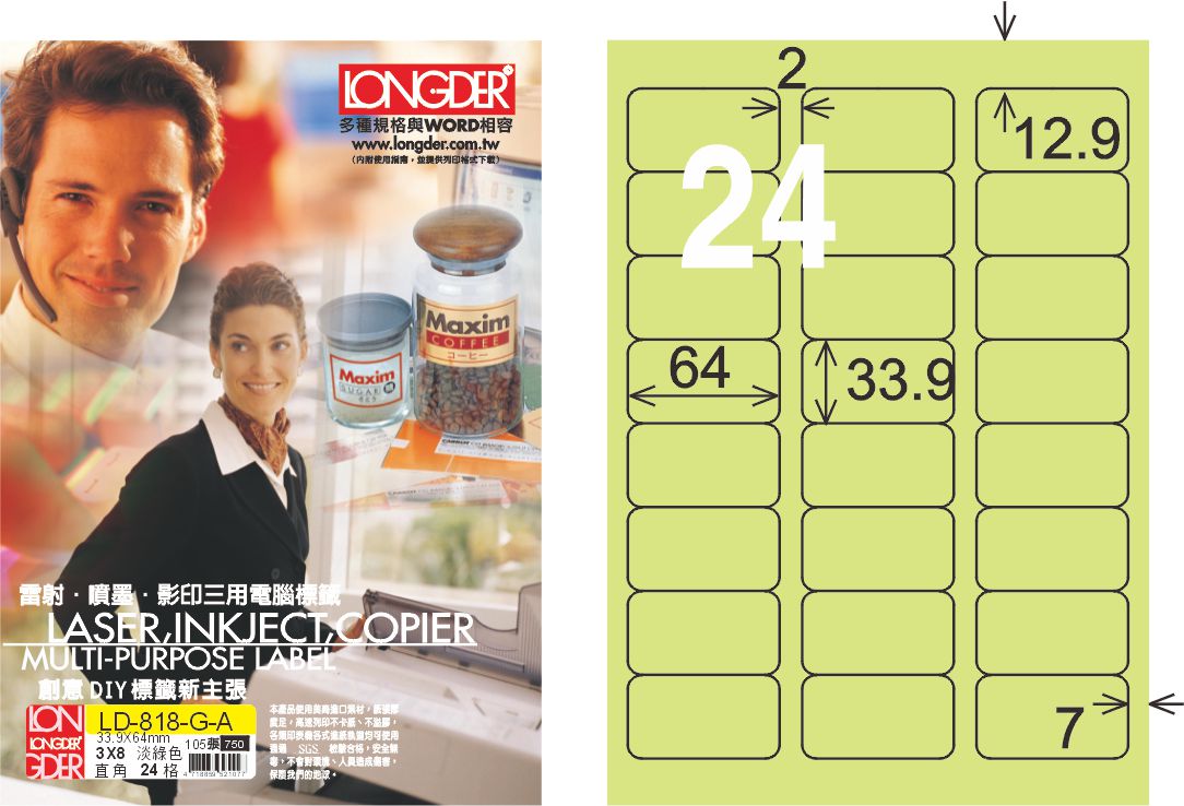 商品名稱:龍德 LD-818-G-A A4三用電腦標籤 淺綠色 / 盒