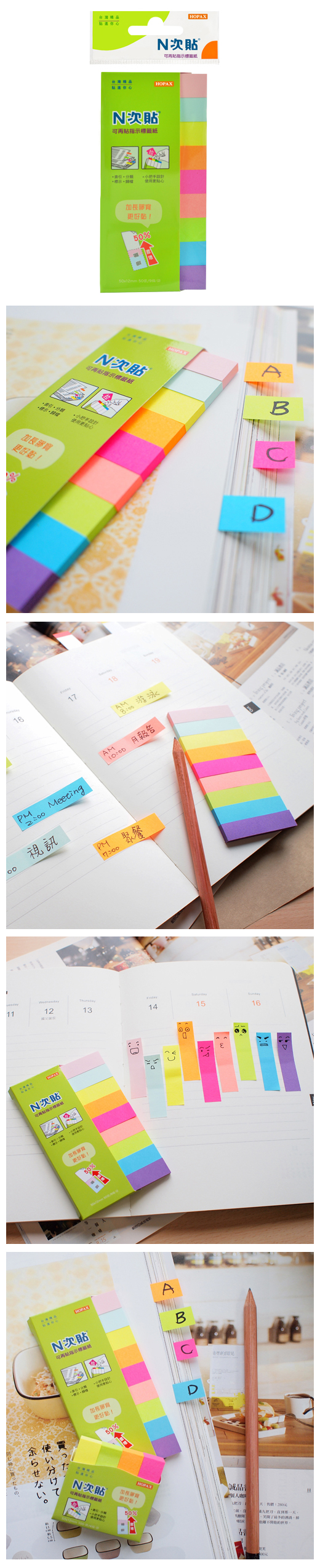 ◎品 名:N次貼 61424 指示型可再貼標籤紙 50x12mm