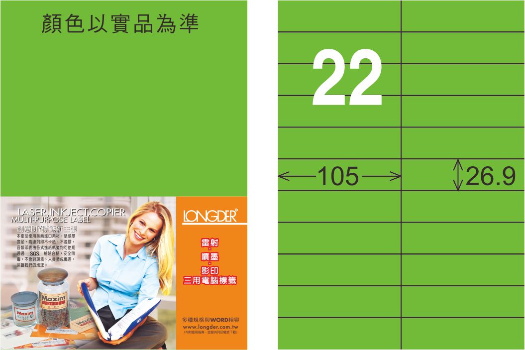 商品名稱:龍德 LD-842-FG-C A4雷射影印標籤 螢光綠 / 包