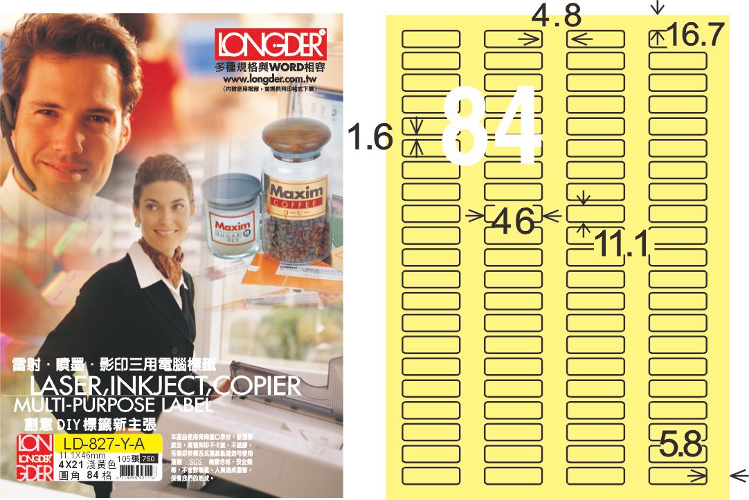商品名稱:龍德 LD-827-Y-A A4三用電腦標籤 淺黃色 / 盒