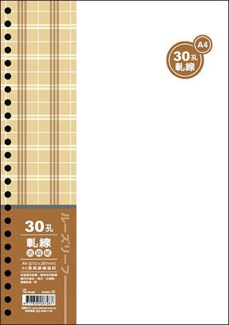 商品名稱:博崴 AO3554 A4 30孔布格紋活頁紙-軋線 -5包入 / 袋商品單位:5包入 / 袋商品型號:AO3554商品規格介紹:◎尺寸:210W x 297H◎入數:80張(包)◎適用於:A4/30孔夾廠商代號:ARA責任代號:HYC