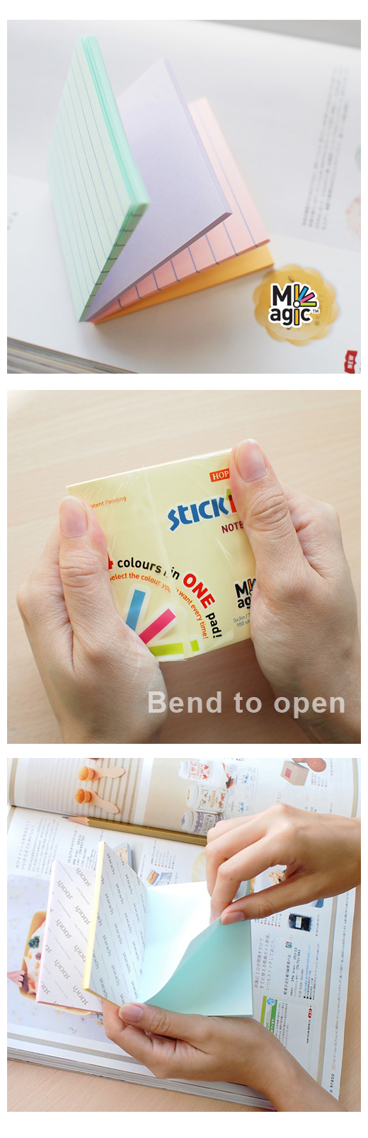 ◎品 名:N次貼 61327 魔術便條磚(標準型) 3"x3"(76x76mm)◎單 位:100張/4色/本◎型 號:61327◎規 格:3"x3"(76x76mm)◎顏 色:藍線/紫/粉紅線/橘◎特 色:可分層直接撕取,一本多色輕鬆攜帶,使用更方便! 體積不變選擇更多,尺寸容易攜帶外出洽公,通勤使用好方便!