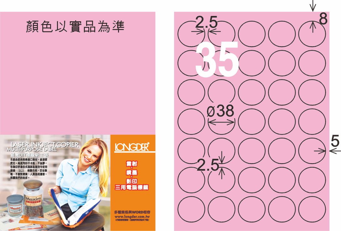 商品名稱:龍德 LD-823-R-C A4三用電腦標籤 粉紅色 / 包