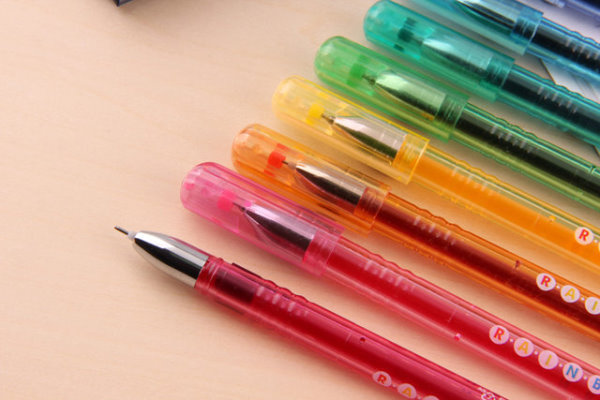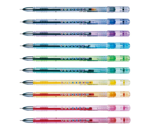 長期熱銷Rainbow中性筆,手帳、筆記好夥伴。繽紛十色可選,色澤鮮艷、墨色清晰,快乾好書寫。握位突起設計,防滑好握。