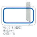 商品名稱:【華麗牌】WL-3018 藍框保護膜標籤(18x32mm) 120張/包商品單位:包商品型號:WL-3018商品特色: 白底藍框保護膜標籤 適用黏貼在紙張或塑膠表面文件檔案夾/索引/商品標示/規格/分類等各種標示黏貼之用