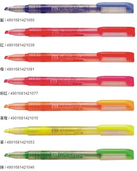 商品名稱:ZEBRA 斑馬 WKP1 SPAKY-1 直液式螢光記號筆 -10色入 / 袋商品單位:10色入 / 袋商品型號:WKP1 SPAKY-1 直液式螢光記號筆商品規格:*筆尖斜尖*顏色10色 *特性:墨色鮮明‧筆尖加保護膜耐水性【廠商介紹】廠商代碼:X12
