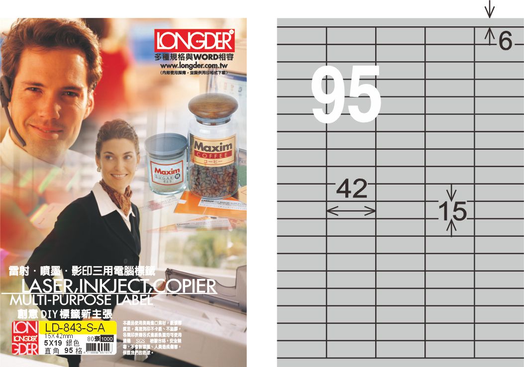 商品名稱:龍德 LD-843-S-A A4雷射影印標籤 銀色 / 盒