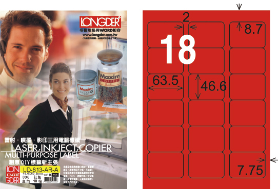 商品名稱:龍德 LD-813-AR-A A4雷射影印標籤 紅銅版 / 盒
