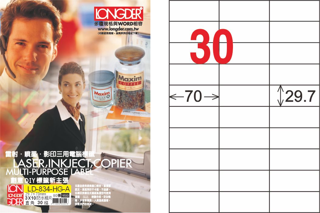商品名稱:龍德 LD-834-HG-A A4亮面防水相片(噴墨標籤) / 盒