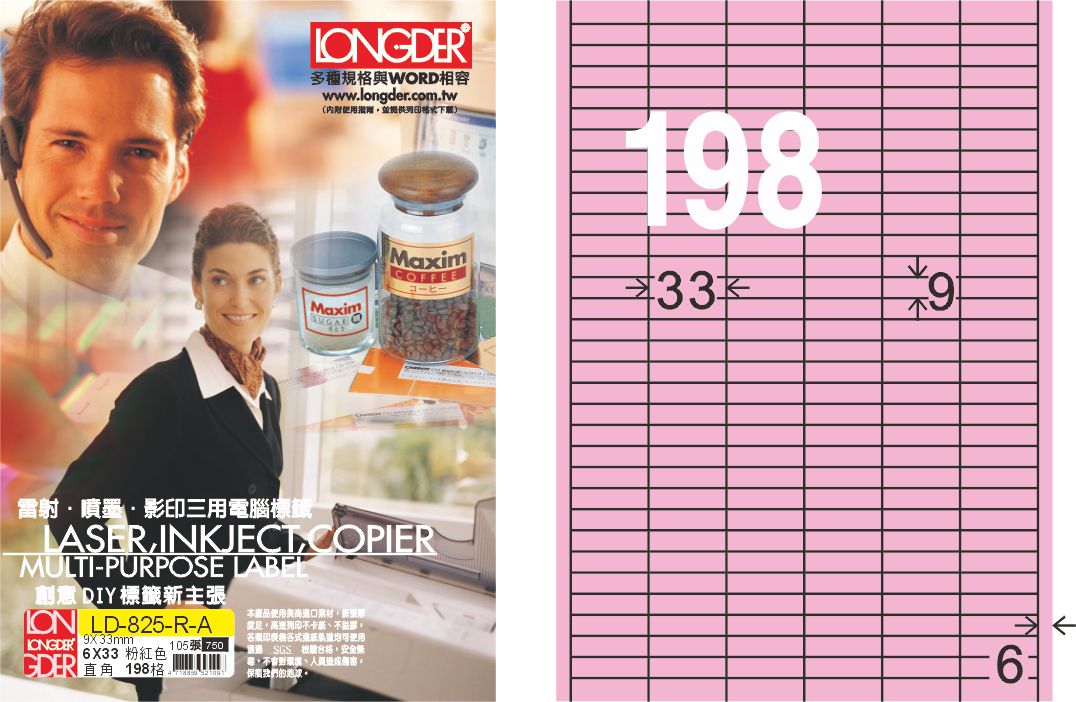 商品名稱:龍德 LD-825-R-A A4三用電腦標籤 粉紅色 / 盒