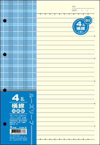 商品名稱:博崴 AO3580 B5 4孔布格紋活頁紙-橫線米 -5包入 / 袋商品單位:5包入 / 袋商品型號:AO3580商品規格介紹:◎尺寸:176W x 257H◎入數:80張(包)◎適用於:B5/4孔夾◎橫線:8 mm ruled line廠商代號:ARA責任代號:HYC