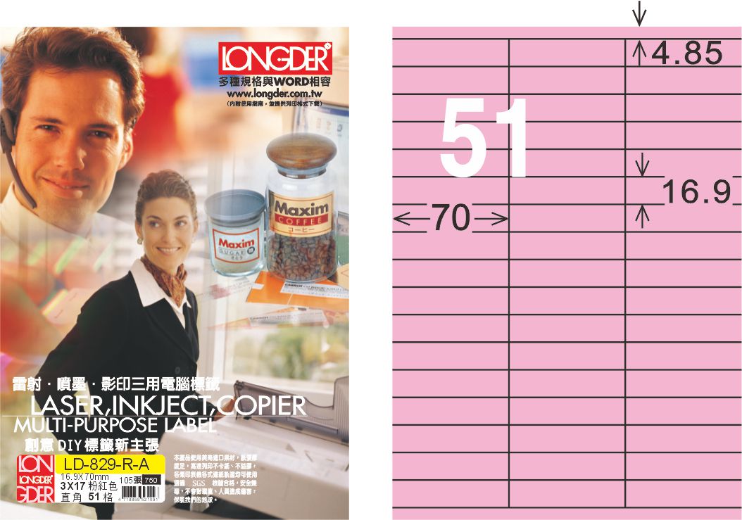 >龍德 LD-829-R-A A4三用電腦標籤 粉紅色 / 盒