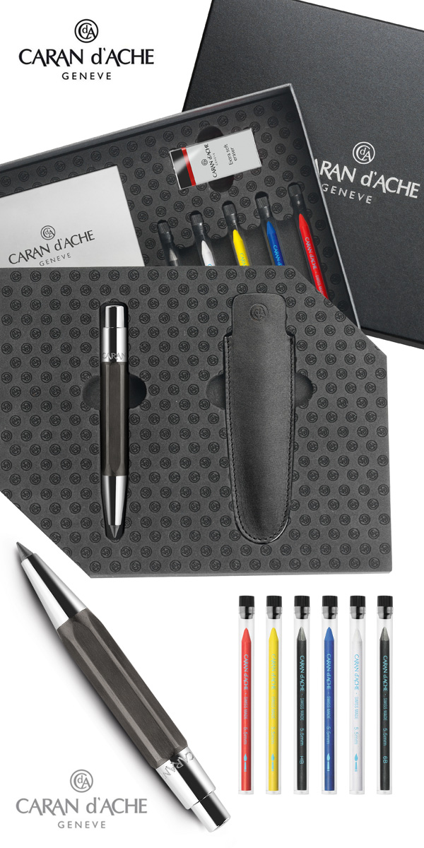 ◎ 品 名:CARAN d'ACHE 瑞士卡達 VARIUS 維樂斯黑檀木素描筆(鈀金) 5.5mm 禮盒