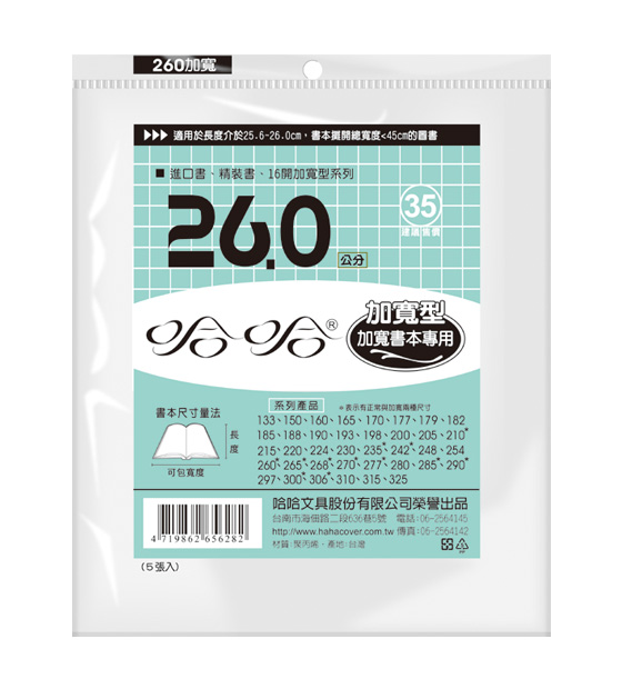 ◎ 品 名:哈哈書套 BC260B 加寬型 傳統塑膠PP書套 26.2 x 45cm 進口書.精裝書.