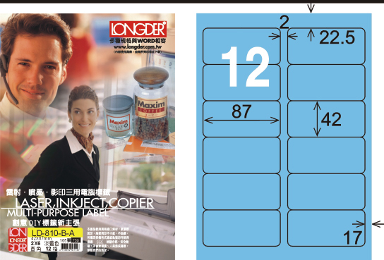 >龍德 LD-810-B-A A4三用電腦標籤 淺藍色 / 盒