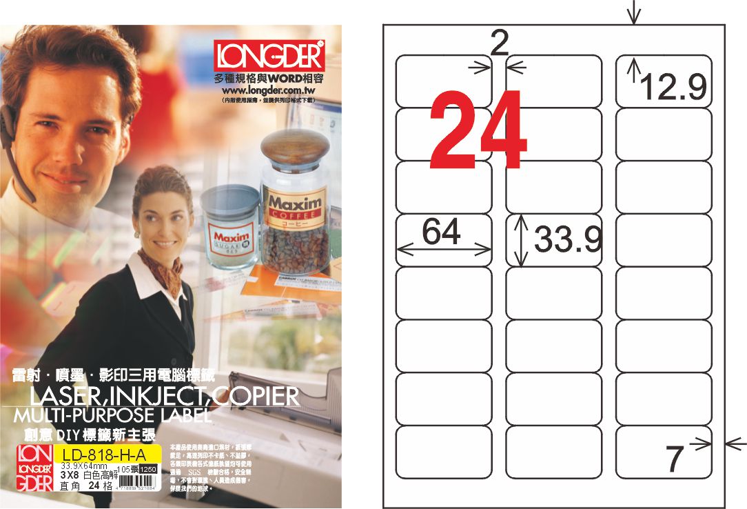 商品名稱:龍德 LD-818-H-A A4平光防水高解析噴墨標籤 / 盒