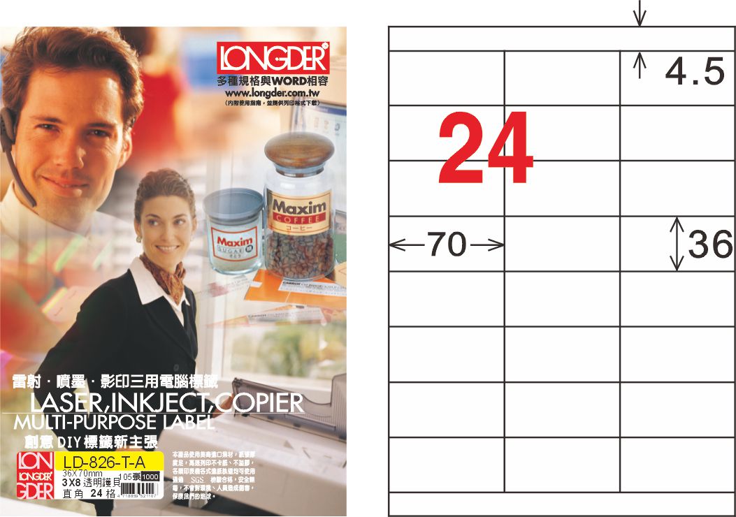商品名稱:龍德 LD-826-T-A A4透明護貝膜標籤(不可列印) / 盒