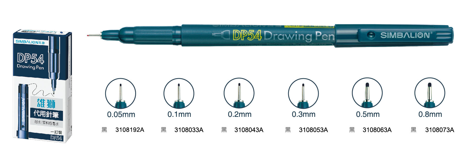 產品特色 :全系列代用針筆產品,因應不同使用需求提供更多的選擇,共有九種筆尖尺寸可供選擇,除了0.1mm到0.8mm筆尖,更推出目前市面上最細的0.05mm筆尖,各有紅、藍、黑三種基本常用色,永遠清晰不易褪色、防水性佳、線條粗細一致、墨色均勻濃黑,不論是設計製圖或是隨手插畫寫生、筆記、草圖,都能滿足您的創作欲