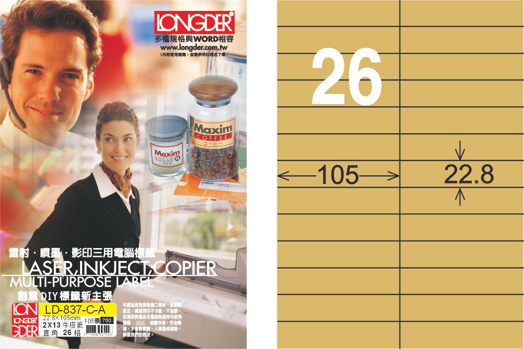 商品名稱:龍德 LD-837-C-A A4三用電腦標籤 牛皮紙 / 盒