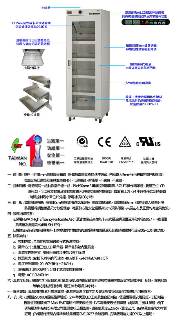 卓越 微電腦防潮藥品櫃 DRY-700SD /台
