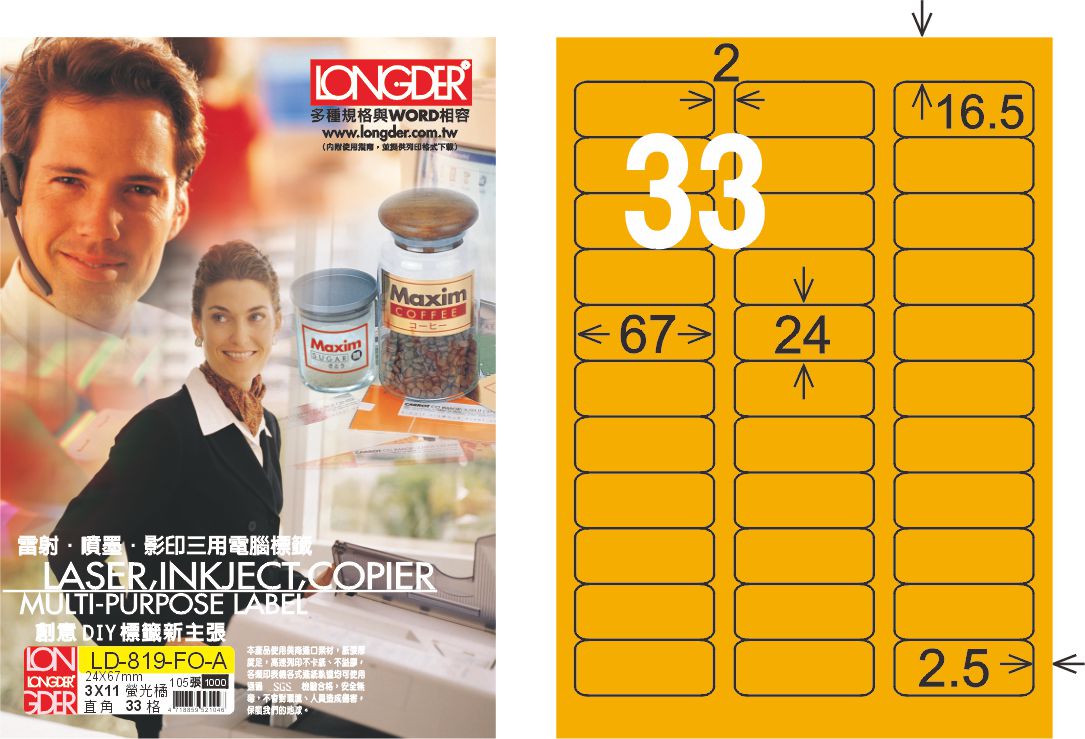 商品名稱:龍德 LD-819-FO-A A4雷射影印標籤 螢光橘 / 盒