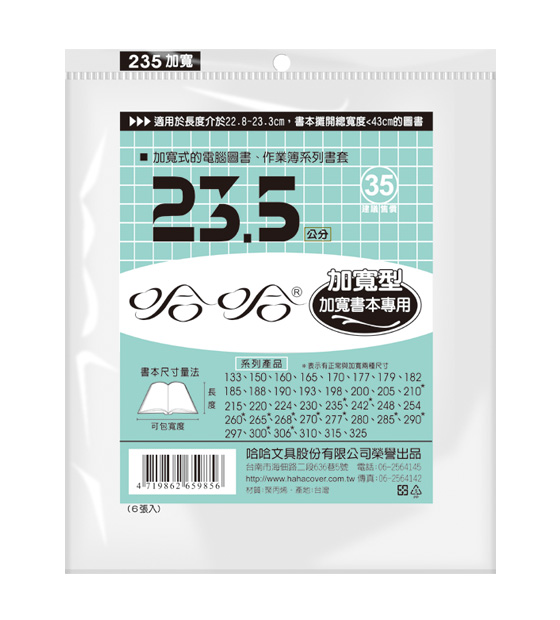 ◎ 品 名:哈哈書套 BC235B 加寬型 傳統塑膠PP書套 23.5 x 43.5cm 加寬式的電腦圖書.
