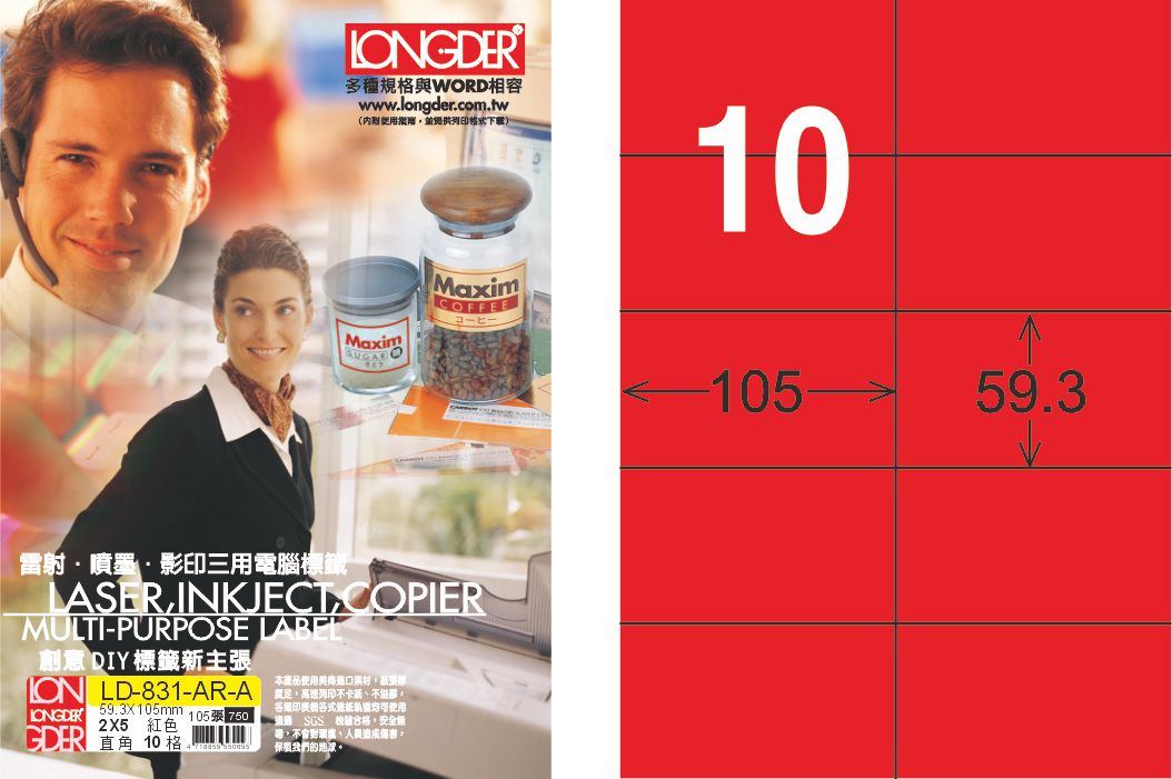 商品名稱:龍德 LD-831-AR-A A4雷射影印標籤 紅銅版 / 盒
