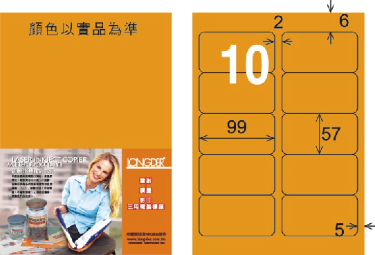 商品名稱:龍德 LD-814-FO-C A4雷射影印標籤 螢光橘 / 包