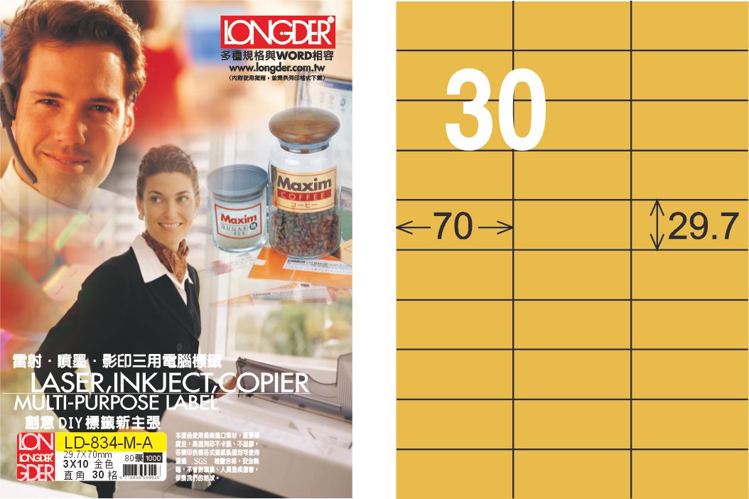 商品名稱:龍德 LD-834-M-A A4雷射影印標籤 金色 / 盒