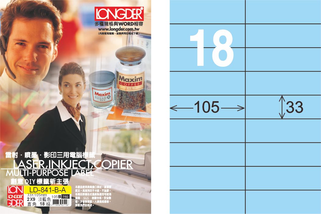 商品名稱:龍德 LD-841-B-A A4三用電腦標籤 淺藍色 / 盒