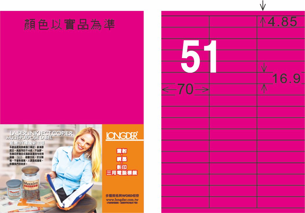 商品名稱:龍德 LD-829-FP-C A4雷射影印標籤 螢光粉紅 / 包