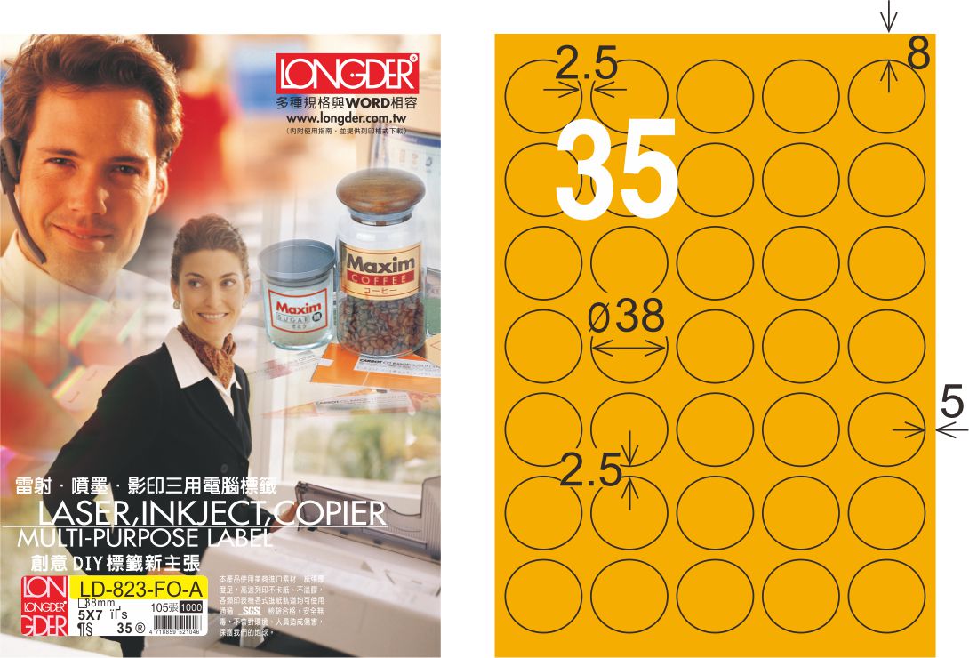 商品名稱:龍德 LD-823-FO-A A4雷射影印標籤 螢光橘 / 盒