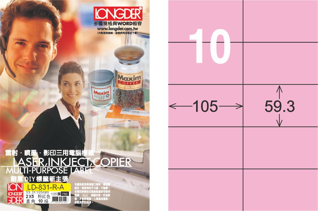 商品名稱:龍德 LD-831-R-A A4三用電腦標籤 粉紅色 / 盒