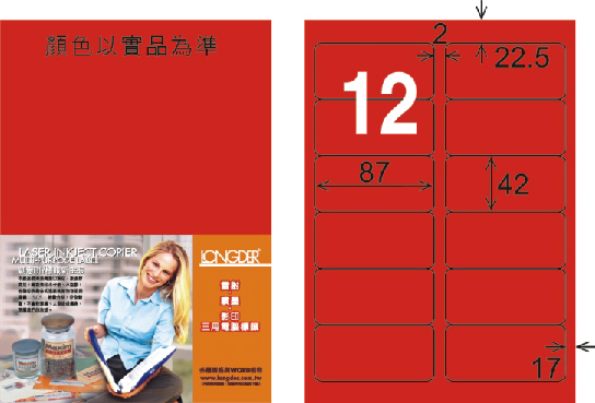>龍德 LD-810-AR-C A4雷射影印標籤 紅銅版 / 包