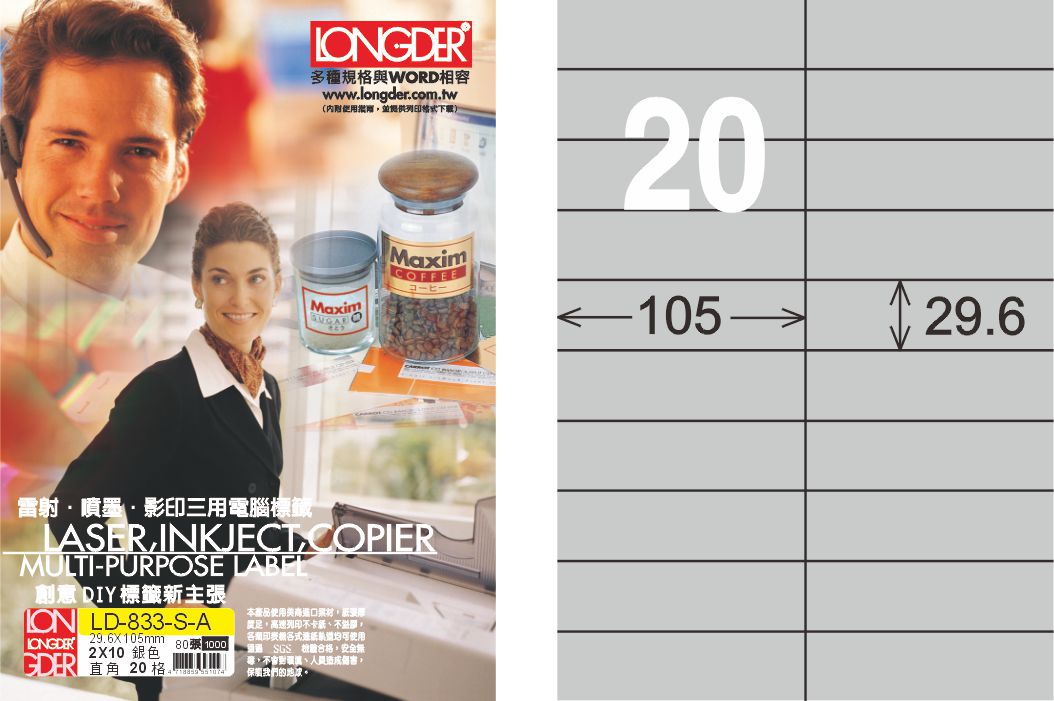 商品名稱:龍德 LD-833-S-A A4雷射影印標籤 銀色 / 盒