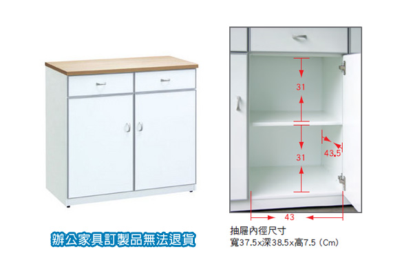◎規格:寬91x深48x高90 (Cm),附二片隔板