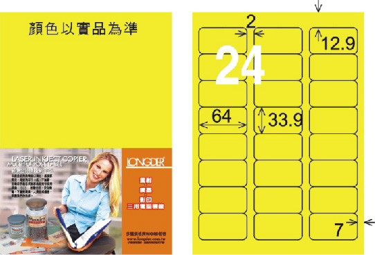 商品名稱:龍德 LD-818-FY-C A4雷射影印標籤 螢光黃 / 包