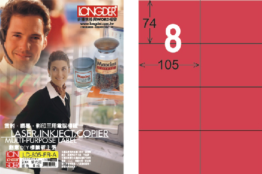 商品名稱:龍德 LD-805-FR-A A4雷射影印標籤 螢光紅 / 盒