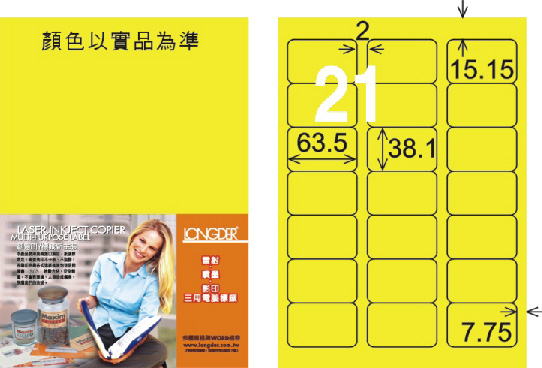 商品名稱:龍德 LD-817-FY-C A4雷射影印標籤 螢光黃 / 包
