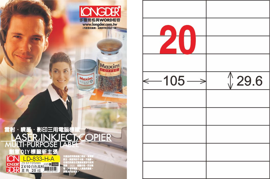 商品名稱:龍德 LD-833-H-A A4平光防水高解析噴墨標籤 / 盒
