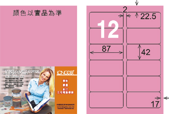 龍德 LD-810-R-C A4三用電腦標籤 粉紅色 / 包