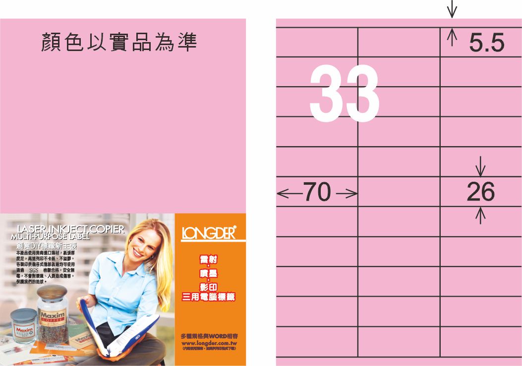 商品名稱:龍德 LD-835-R-C A4三用電腦標籤 粉紅色 / 包