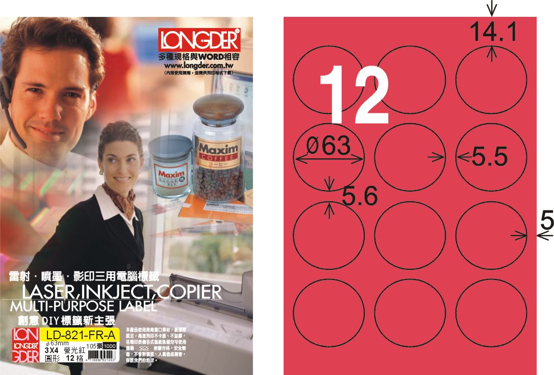 商品名稱:龍德 LD-821-FR-A A4雷射影印標籤 螢光紅 / 盒